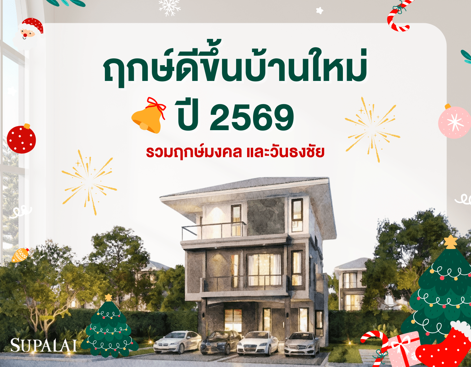 คนที่ซื้อบ้านใหม่และโอนกรรมสิทธิ์เรียบร้อยแล้ว เรื่องต่อไปที่ทุกคนต้องทำคือการย้ายเข้าบ้านหลังใหม่ เพื่อเริ่มต้นชีวิตใหม่ ในสถานที่ใหม่ วันนี้ศุภาลัย อัปเดต! ฤกษ์ขึ้นบ้านใหม่ 2569 มาให้แล้ว ฤกษ์วันดี หรือวันธงชัย เลือกวันดีสำหรับบ้านใหม่ให้ครอบครัวมั่นคงรุ่งเรือง ให้ชีวิตราบรื่นและเป็นสิริมงคล โดยเฉพาะวันธงชัยที่เชื่อว่านำชัยชนะและความสำเร็จมาสู่เจ้าของบ้าน การเลือกฤกษ์ดีเหล่านี้ช่วยเสริมพลังบวกให้บ้านและครอบครัว