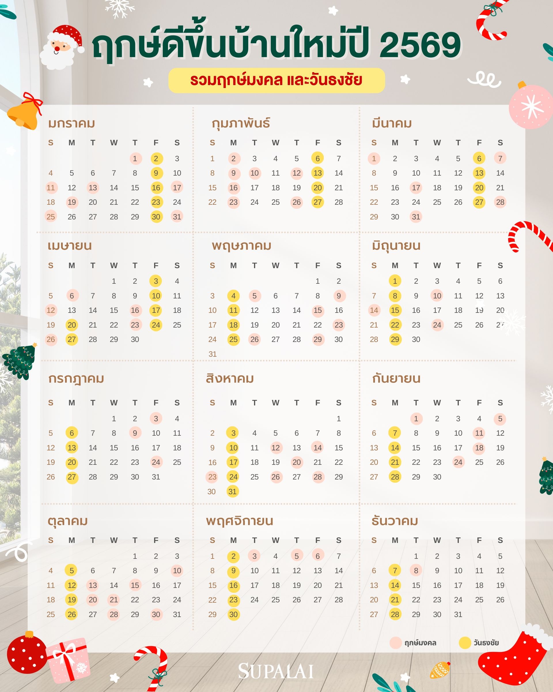 ฤกษ์มงคลขึ้นบ้านใหม่ ธันวาคม 2569